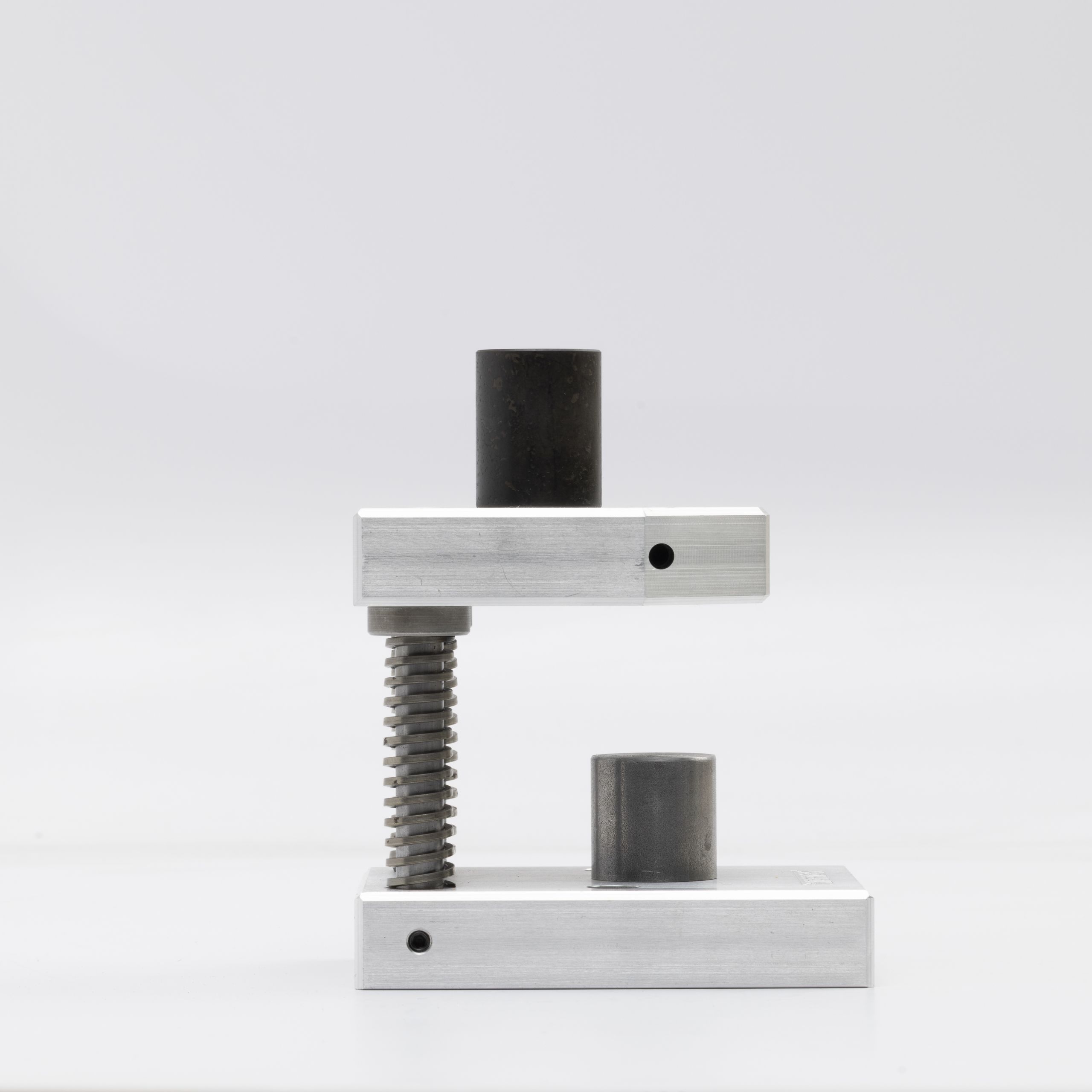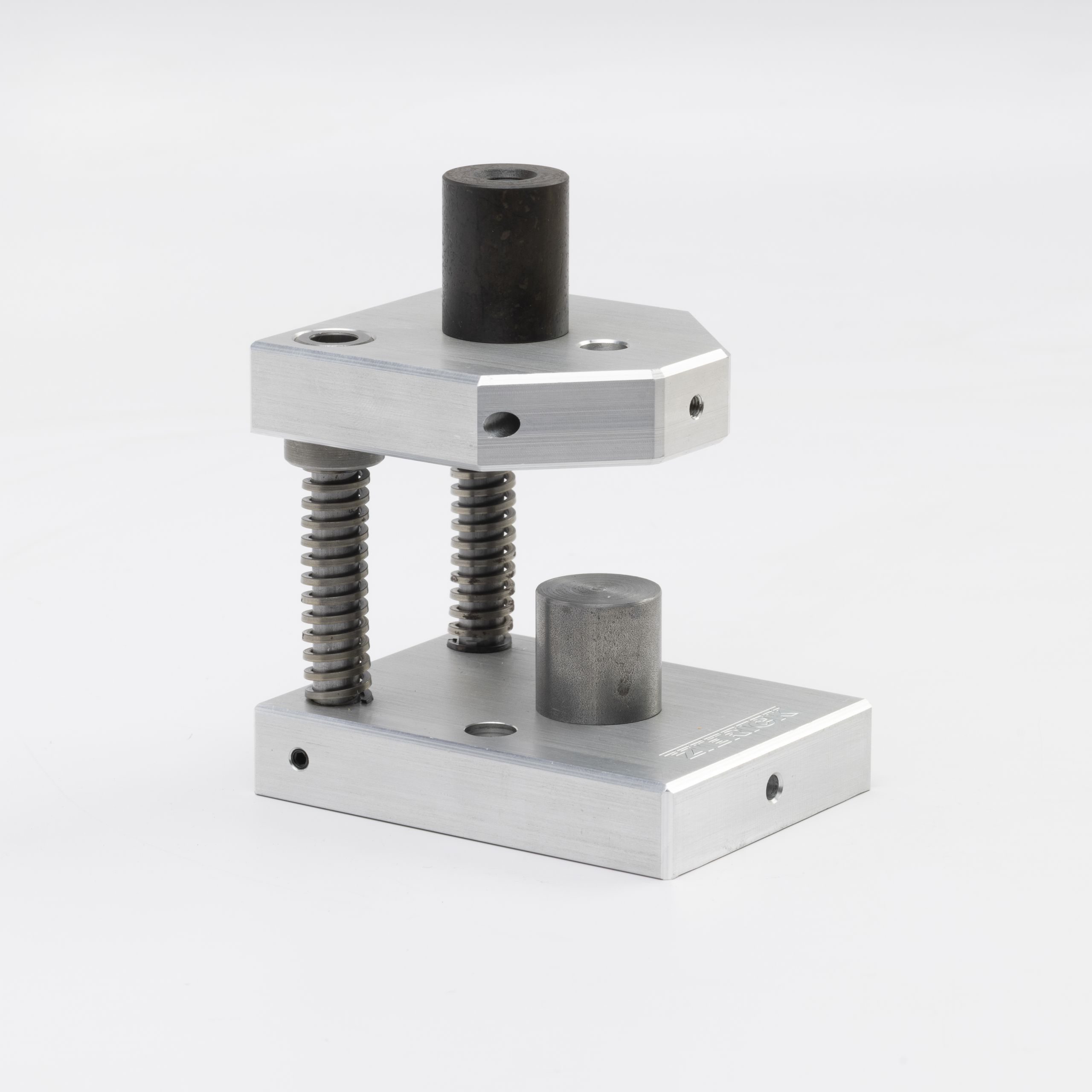 The Versa-Crimp is a small portable tool which, using the appropriate interchangeable Crimp Die Set, is designed for low volume applications, with options for different Part Numbers. It can be used with an arbor press, a bench vice or anything that will create enough force to make an adequate crimp.